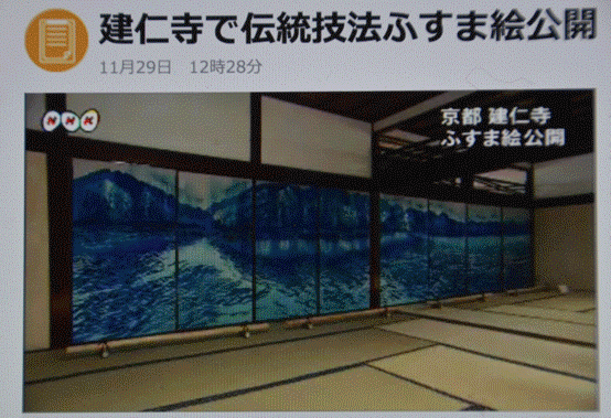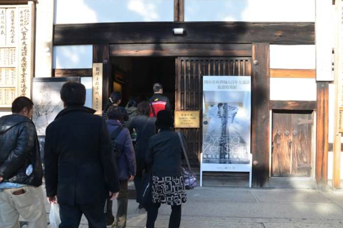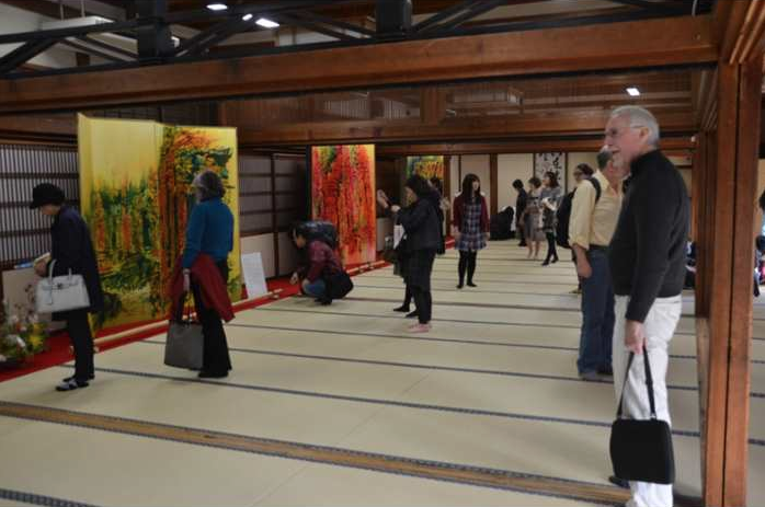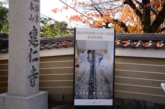 建仁寺のお庭のあでやかな紅葉を背景に、型染めによる空間デザインを創り出すなかで、多くの方に襖絵作品をご覧いただくことが出来、期間中、約1万7千人の方々のご来場があった。